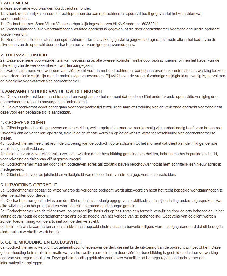 Algemene Voorwaarden Sana Vitam Vitaalcoachpraktijk / Sana Vitam Lifestyle