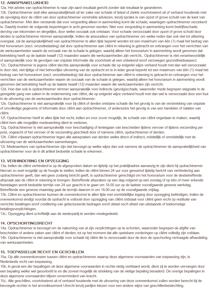 Algemene Voorwaarden Sana Vitam Vitaalcoachpraktijk / Sana Vitam Lifestyle vervolg
