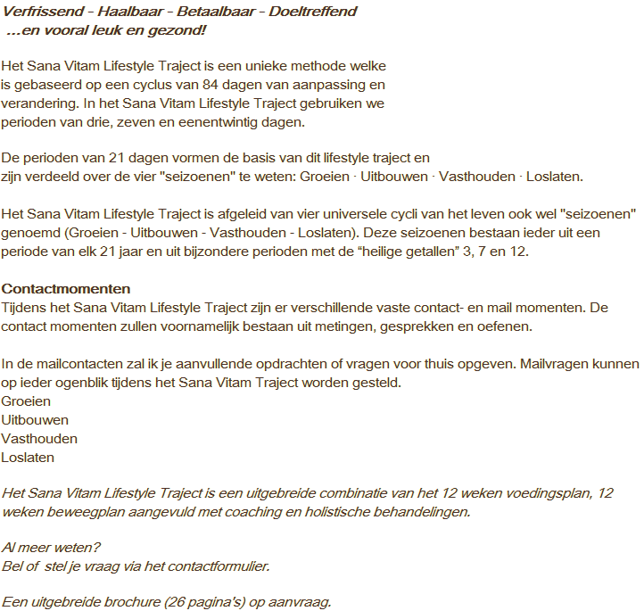 Het 84 dagen Sana Vitam Lifestyle Traject